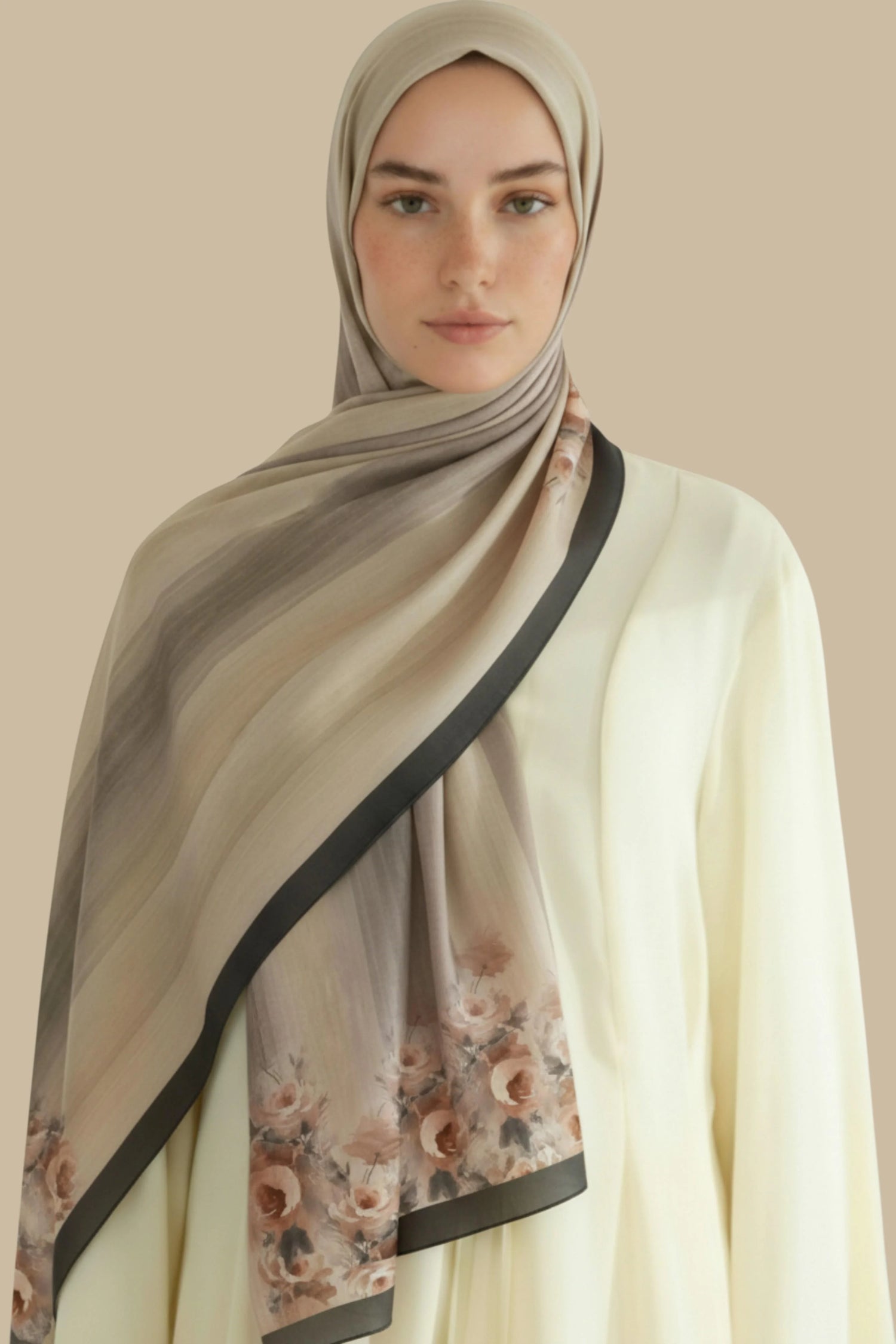 İndirimGONCA - Kahve Çiçek Dokulu Şal