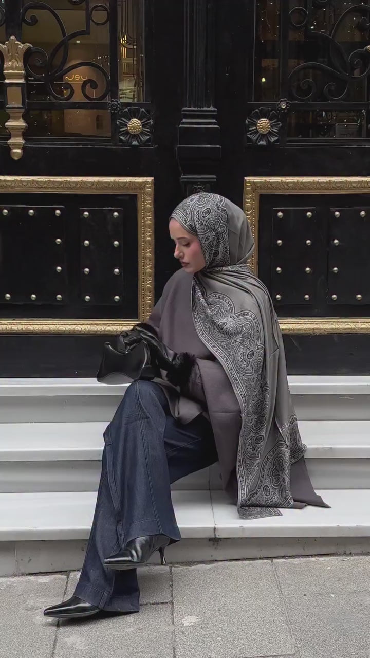 ZELHAGİZLİ BAHÇE - Koyu Gri Floş Şal